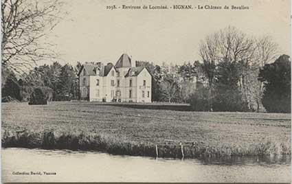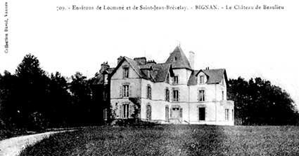 C'était jadis le siège d'une seigneurie, avec haute justice, appartenant à la famille de Lanvaux. Au début du XVe siècle, elle est à Guillaume, puis à Olivier de Lanvaux. Après 1580, l'édifice passe aux Cahideuc. Le château fut ensuite propriété des La Chesnaye d'Estimbrieuc, qui le cédèrent, en 1662, aux La Touche de Porhman. Ceux-ci le revendirent en 1778, aux Lesquen. Le lieu passe ensuite, par alliance, aux Kernezne, et aux Keranflech au XIXe siècle. En 1910, il appartient à l'archéologue Aveneau de La Grancière. A ce moment, il ne subsiste rien de l'ancien manoir féodal sauf quelques traces des douves. Trois pièces du rez-de-chaussée du château bâti au XIXe siècle abritent un temps les collections de M. de La Grancière. Placé sur une hauteur dominant l'étang, le château est très visible, il appartient à M. Alain Guillot, qui l'habite. Pour joindre Beaulieu à partir de Locminé, il faut prendre la route D.1 vers Bignan et tourner à gauche à 1 km du centre sur la C.7.