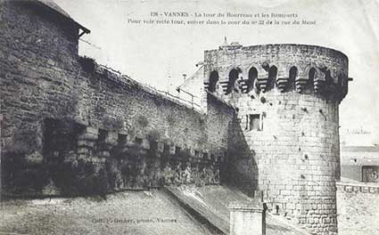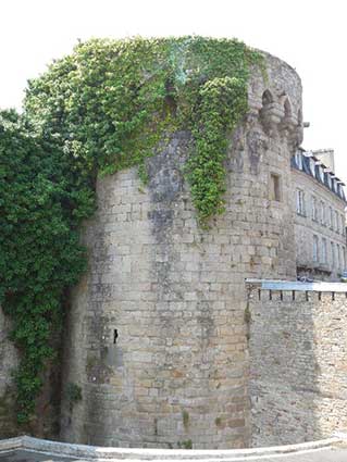 Édifiée au XV e siècle, cette tour avait pour but de protéger le mur nord de la ville depuis la porte Saint-Patern jusqu'au château de la Motte, aujourd'hui disparu. Située à un point de rupture de la courtine, la construction fait saillie et supprime tout angle mort. C'est une tour de flanquement : le défenseur y prend l'assaillant de flanc. Cette situation stratégique permet une grande économie de soldats. Un seul tireur peut neutraliser toute la longueur de l'obstacle flanqué, dans la limite de la portée de son arme. À noter qu'à cette époque, la tour ne protégeait aucune entrée puisque la porte Saint-Jean n'a été percée qu'à la fin du XVII e siècle (1685-1688).