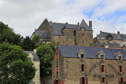 Le château, construit aux XVIe et XVIIe siècles, fut jadis entouré de douves, et possède une grosse tour carrée. Dominant le Ruicard, la demeure à l'aplomb du rocher, doit son nom au contraste existant entre ses deux façades (nord à deux niveaux, et sud à cinq niveaux). L'importance des caves et des greniers fait penser à la maison d'un très riche bourgeois ayant fondé sa fortune sur le négoce. Elle appartint avec la baronnie, à la famille Bernard, aux Laval, aux Rieux, aux Coislin au XVIIe siècle et aux Boisgelin. Par la suite la demeure fut aux Rouxel, aux Morice et, depuis 1983 elle abrite le Musée de la Vilaine Maritime. En estuaire de Vilaine, les hommes ont su exploiter les ressources du fleuve et de la mer, la pêche, la construction navale sont autant d'activités qui ont marqué la cité. Découvrez leur histoire en visitant les 8 salles d'exposition et la salle de vidéo. Visitez la salle consacrée à la Bataille des Cardianux, bataille navale ayant opposée les flottes françaises et britanniques en 1759.