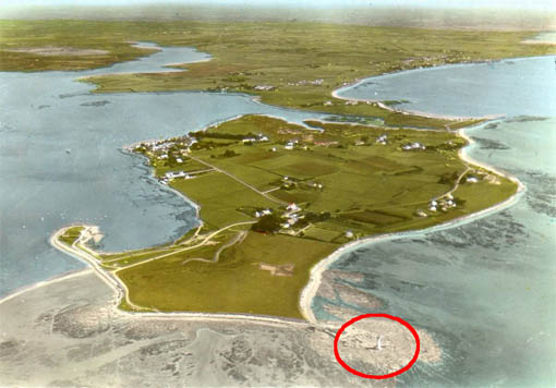 Elle se trouve au sud-ouest de la presqu'île de Pénerf séparé de l'actuel rivage par une centaine de mètres de rochers assez plats.
