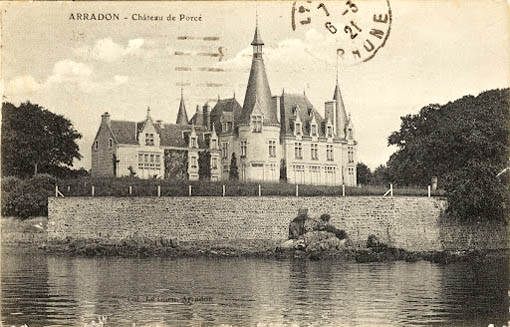 Le Chateau de Porcé se situe à l'Est du bourg d'Arradon dans le Morbihan. Chateau attesté en 1443 appartenant à Jehan Sigalo, demeurant en son hostel de Kervoyer. Chapelle datant peut-être du XVIIIe siècle, détruite puis reconstruite en 1911. Château édifié en 1885 pour le marquis de La Révellière, s'appuyant sur le manoir antérieur, détruit par les allemands en 1944. Ferme et colombier datant de la fin du XIXe siècle. Colombier, chapelle et ferme conservés. Château en moellon enduit, ouvertures en calcaire, à un étage carré et deux étages de comble, toit à longs pans à pignon découvert, noue, croupes, toit conique sur les tours.