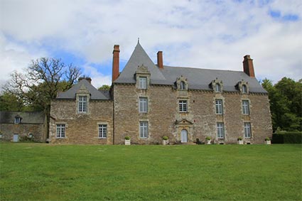 "Situé à l'orée du bois du Talhouët, le domaine du même nom se compose d'un grand logis entouré de ses dépendances (grange, étables, fournil), d'une citerne à eau, d'une chapelle et de sa sacristie, d'anciens murs de clôtures et de jardins avec bassin.Le château orienté nord-sud, forme un plan en L. La partie centrale avec son décrochement est la partie la plus ancienne. L'élévation nord conserve une porte surmontée d'un blason (représentant les armes des familles Du Bot et Briande de la Chapelle (?) tenu par deux lions ou guépards en haut-relief. Cette élévation comporte également deux oculi en rez-de-chaussée qui éclairent le départ d'escalier menant à une cave, ainsi qu'une lucarne datée 1582. Sur l'élévation sud, la porte principale est mise en valeur par des pilastres surmontés d'un fronton triangulaire. Au dessus, l'inscription : " ALAIN DU BOT BRIANDE DE LA CHAPELLE HANRI DU BOT" confirme l'identité des commanditaires. La lucarne voisine porte quant à elle, la devise du couple : "ce qui me plaist, m'ennuie", encadrée des initiales de leurs prénoms, A et B. Dans le pignon est, des pierres d'attente et quelques ouvertures bouchées témoignent du projet d'extension d'un pavillon identique à celui de l'ouest, projet non réalisé. L'élévation ouest de l'extension ouest, plus basse, montre plusieurs ouvertures bouchées.A l'intérieur, l'étage est distribué par un escalier à retours à volées droites sur mur noyau.La chapelle Saint-Jean est de style Renaissance. Elle est à vaisseau unique et présente un chevet à pans coupés. Le mur-pignon occidental est surmonté d'un clocheton à dôme. La nef est couverte d'un lambris en berceau et en cul-de-four dans l'abside. L'ensemble est lambrissé et entièrement quadrillé par des tiges de bois. La clé de la voûte porte les armoiries des familles de Rohan, du Talhouët, du Bot, et Huchet. Deux blasons n'ont pas été identifiés. Trois baies éclairent la nef et deux niches sacraires sont percées dans les murs est. Il faut également noter la présence d'un bénitier ancien, encastré dans le mur méridional, ainsi que deux confessionnaux (18e siècle?). Au nord-ouest du logis s'étend une dépendance à plan en U dont la partie sud est à usage d'écuries et de remise ; en moellon de schiste, sans étage, elle est ouverte d'une grande porte charretière axiale. Au sud de cette remise se trouve une citerne circulaire en moellon qui émerge du sol d'environ 1m.A l'est du château dans l'ancien jardin, le bassin circulaire est bordé de granite.